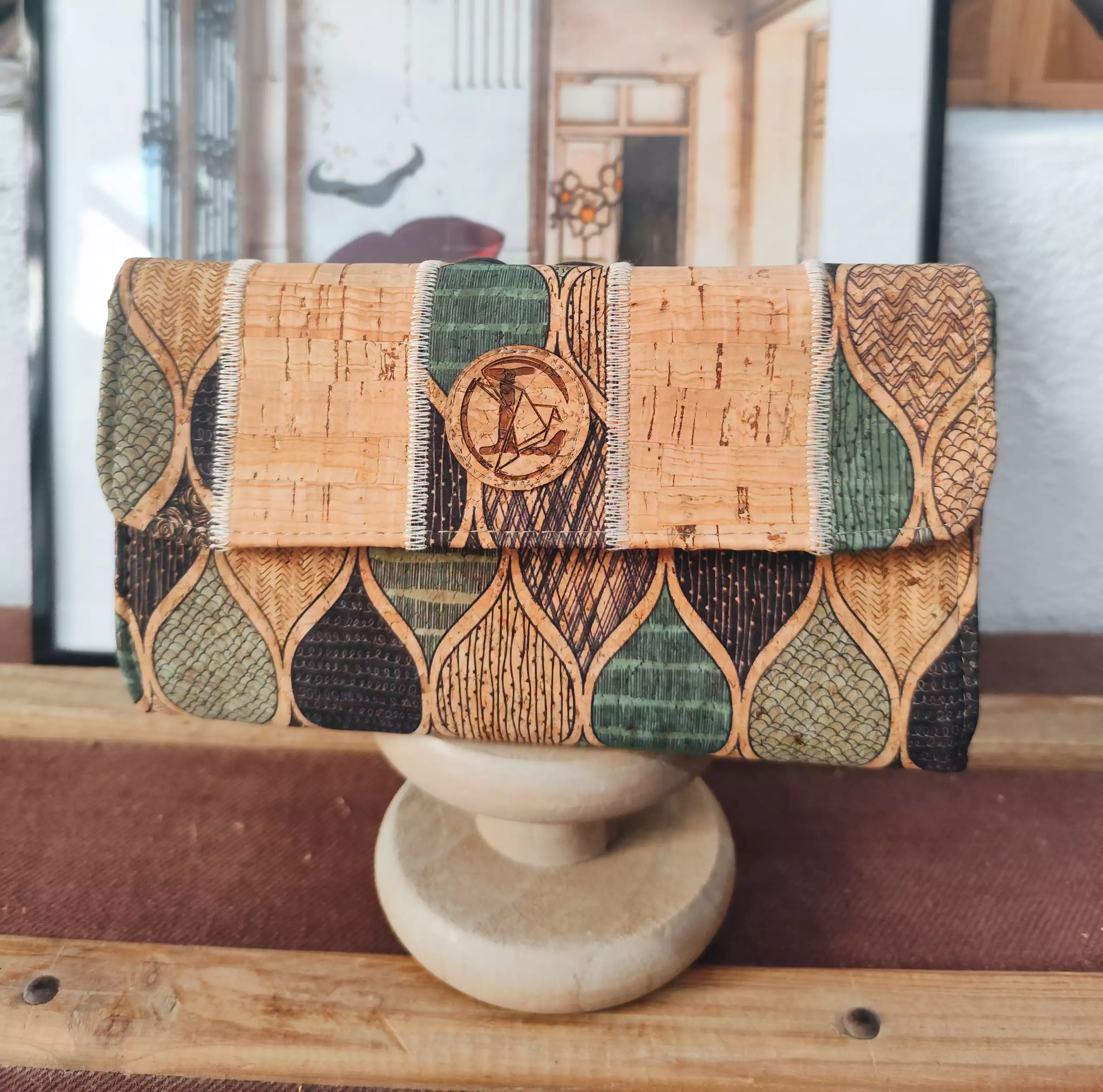 Portefeuille en liège avec emplacement pour carte. Poche pour carte d’identité, permis de conduire, monnaie et billet. Dimensions 18×12 cm.