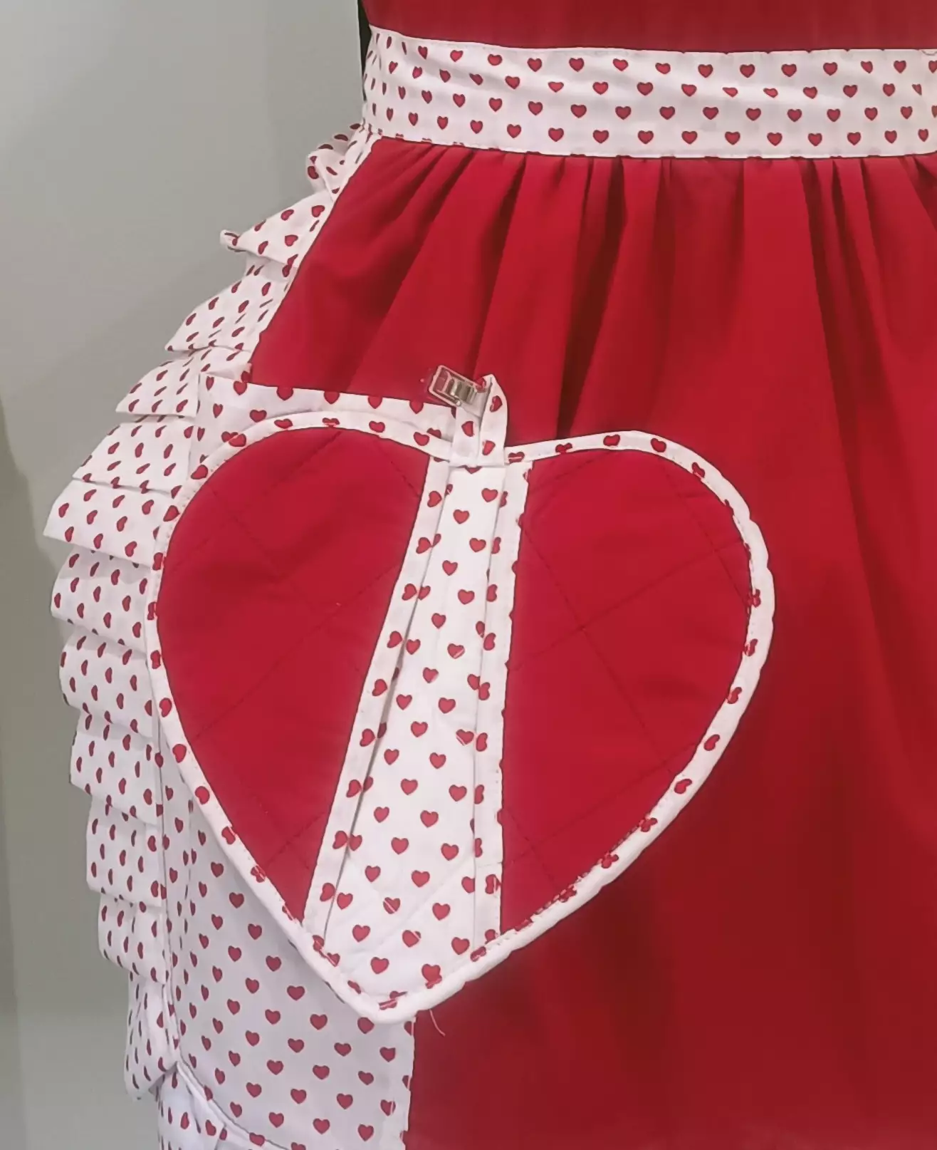 Tabliers de cuisine rétro rouge et blanc, à petits coeurs.